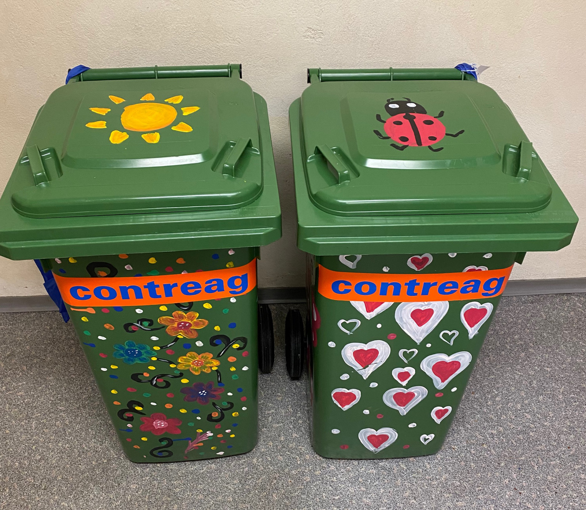 Im Dezember 2021 wurde bei der Contreag fleissig gepinselt: Unsere Mitarbeitenden haben kleine grüne Kunststoffcontainer in wahre Kunstwerke verwandelt – liebevoll bemalt mit bunten, fröhlichen Motiven, die Kinderaugen zum Strahlen bringen.